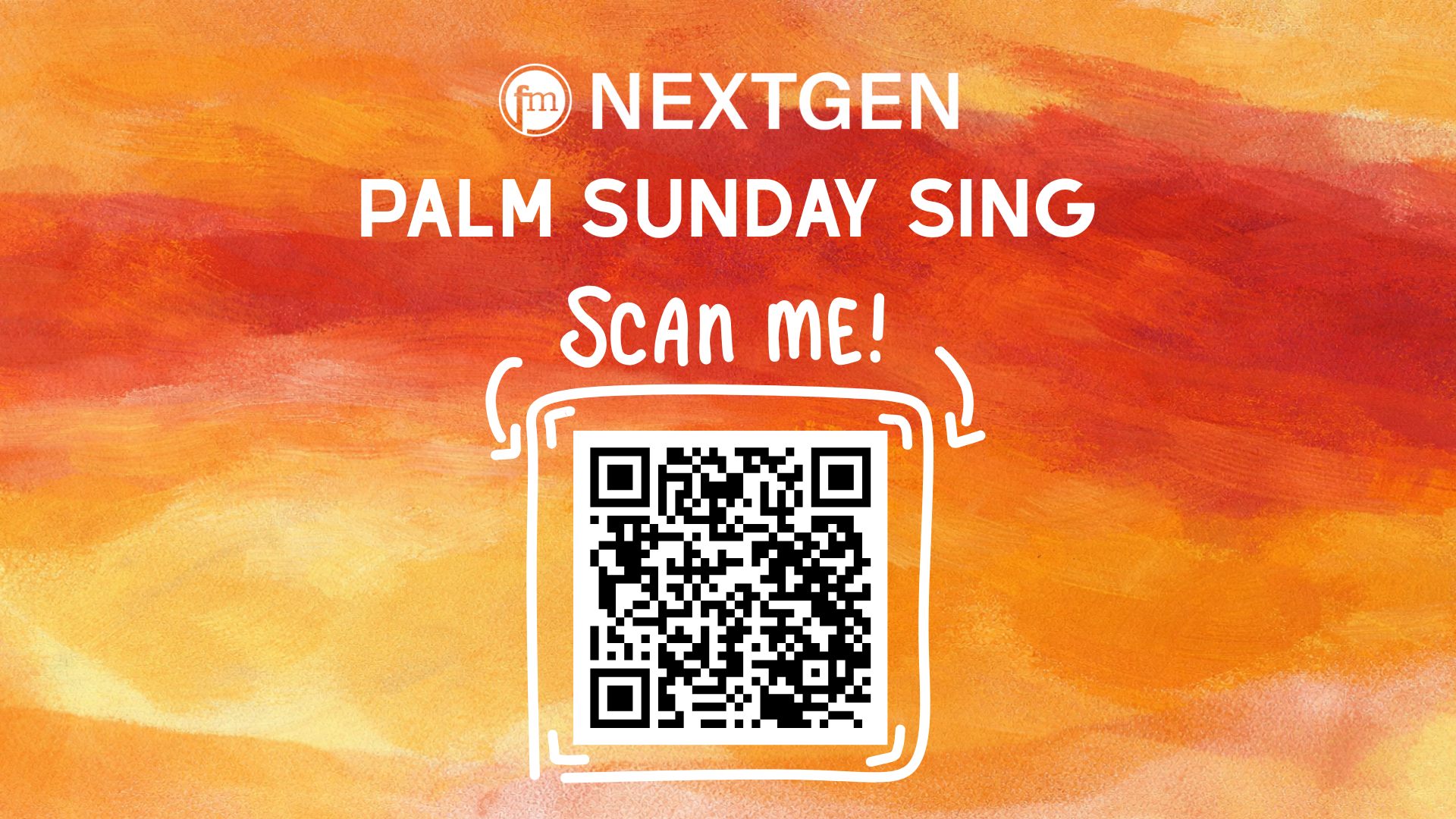 Our preschool-elementary kids will be leading us in “Sing Hosanna” on Palm Sunday, March 29 right at the end of the first worship set in each service. Scan the QR code or follow this link to sing at home with your kids (the kids will be singing from timecode 00:27-02:25 in this linked song).