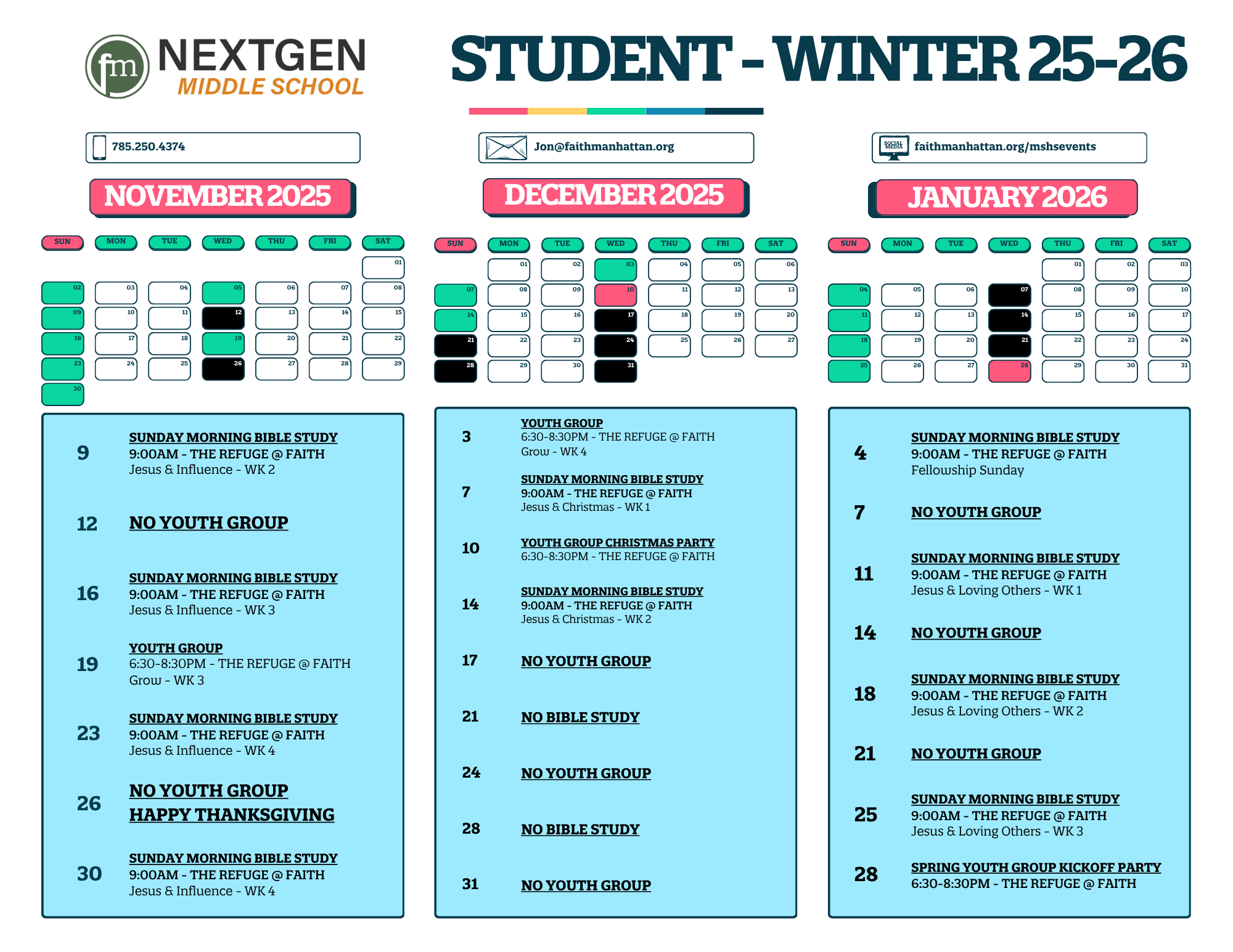 ——> Youth Group, Spring Kick-off is January 28